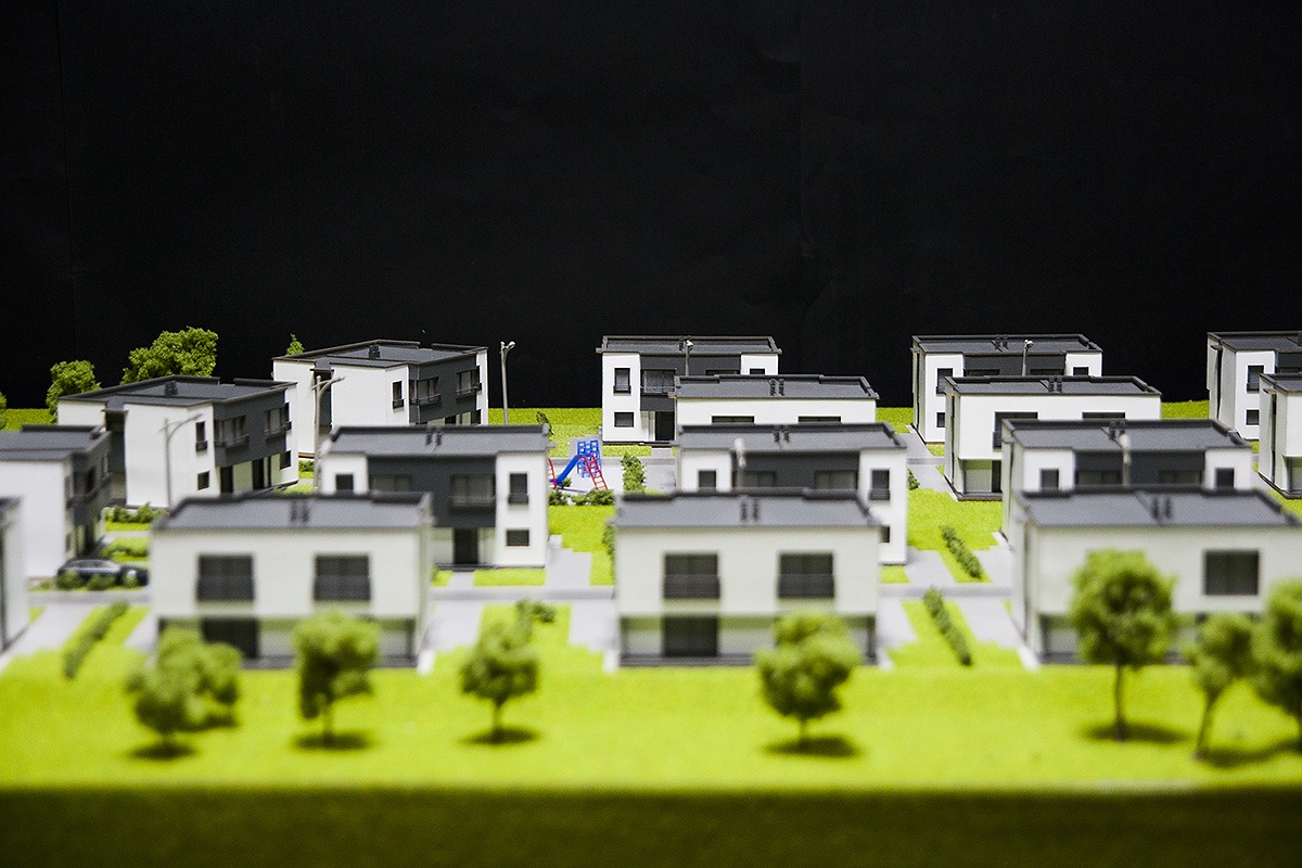 Nasza makieta osiedla domów jednorodzinnych w Łodzi dla Eurodom Development wraz z terenem wokół i zagospodarowaniem wspólnej powierzchni użytkowej osiedla, w tym placu zabaw. Budynki i latarnie są podświetlone. Dokładne odwzorowanie 18 niemal identycznych wolno stojących bliźniaków umożliwiło wykorzystanie plotera laserowego do przygotowania części składających się na poszczególne modele.
